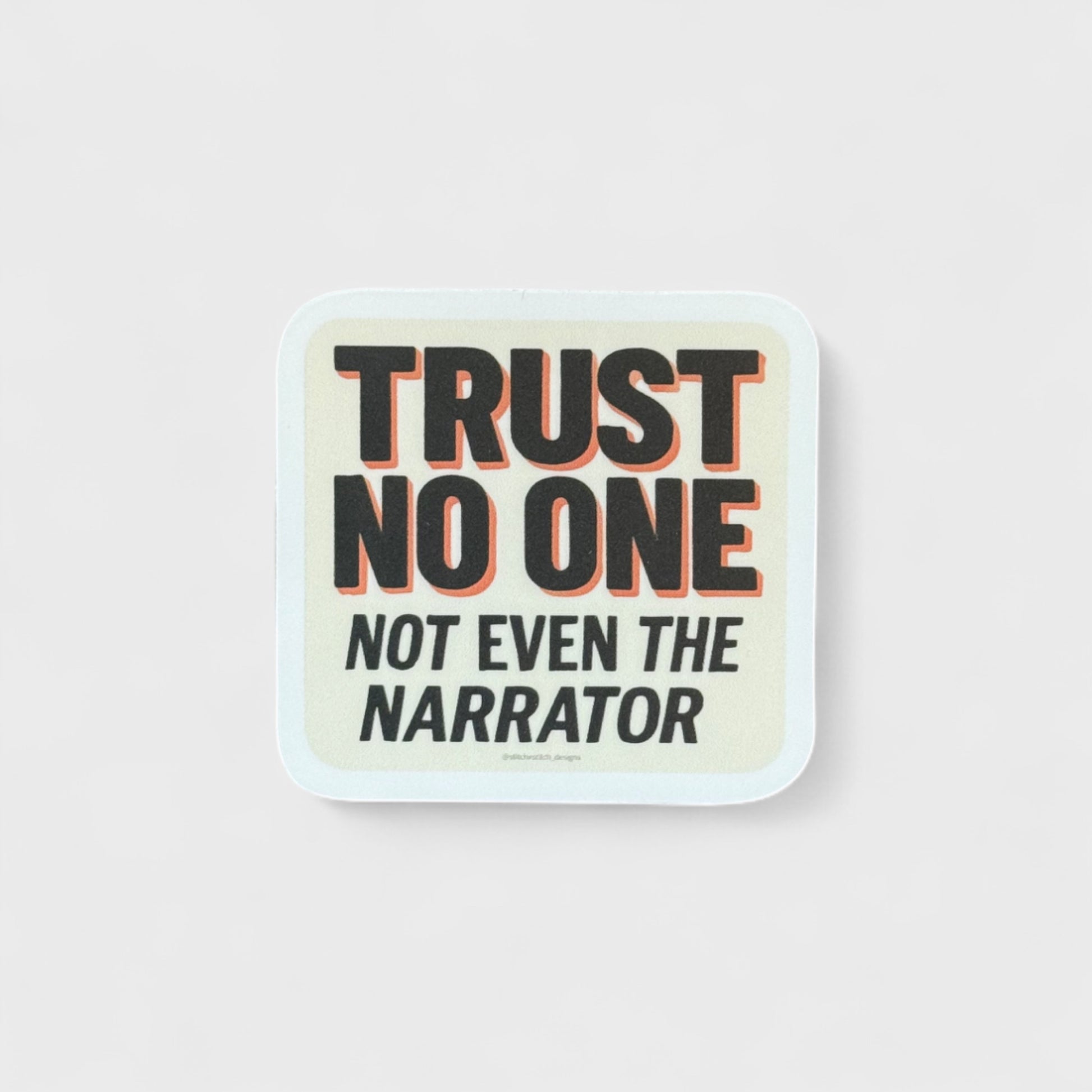 If you’ve read one too many thrillers and now trust no one... this sticker gets you. Our “Trust No One Not Even the Narrator” design is perfect for readers who love suspense, plot twists, and characters with secrets.